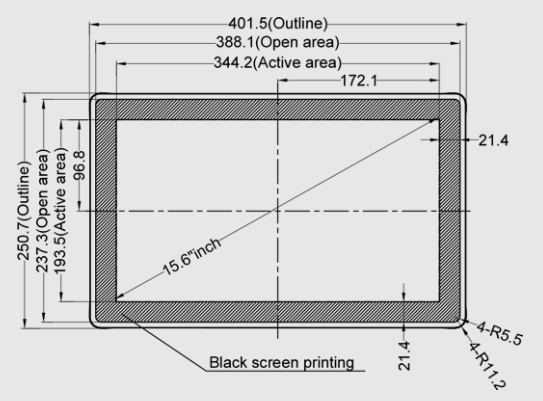 | Display area size | (H)344.2mm×(V)193.5mm | |